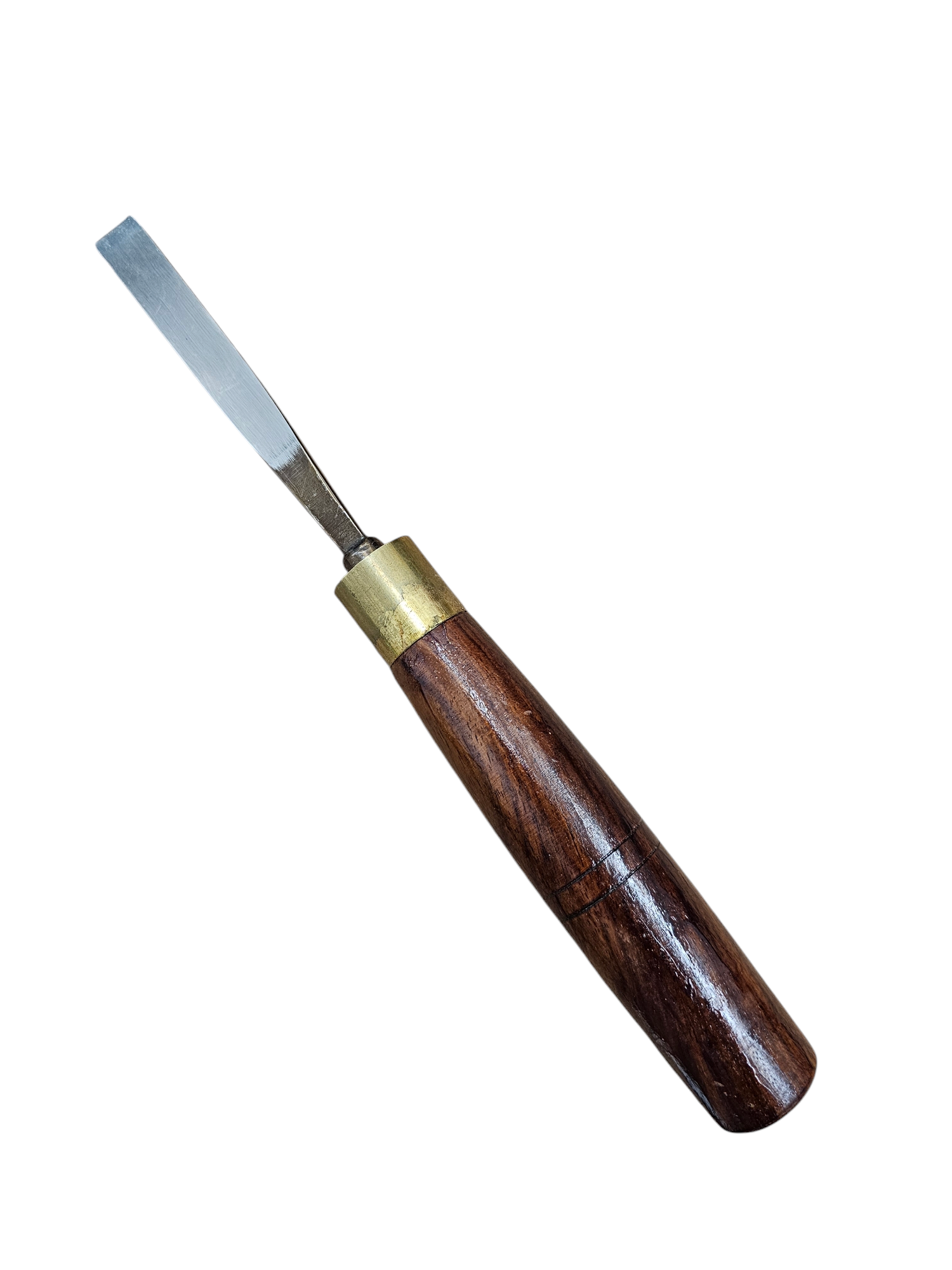 Estas herramientas, con un filo curvo de 1/2" a 3-7/8" de punta a punta, están hechas de acero con alto contenido de carbono y templadas en un rango de aproximadamente 0,59 a 0,62 en el dispositivo de prueba de dureza Rockwell Black Diamond. . El mango está sujeto de forma segura a la hoja y tiene forma octogonal para que la herramienta no se tuerza ni gire mientras talla. Largo aproximado con hoja: 11 1/2".