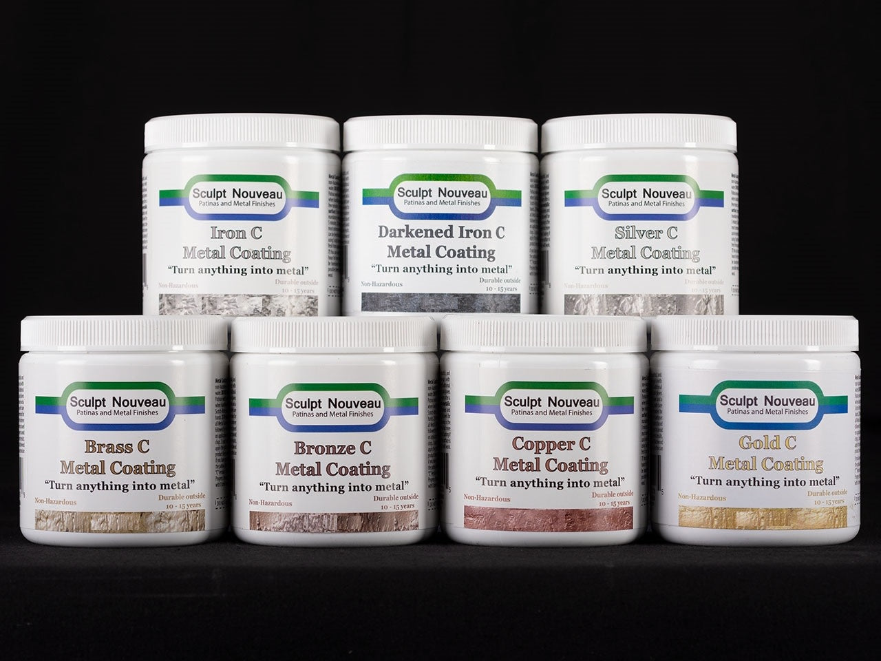 Los recubrimientos metálicos son metal molido suspendido en un aglutinante acrílico a base de agua no tóxico. Se pueden aplicar tanto a superficies metálicas como no metálicas, como vidrio, madera, cerámica, hormigón, espuma y resina.