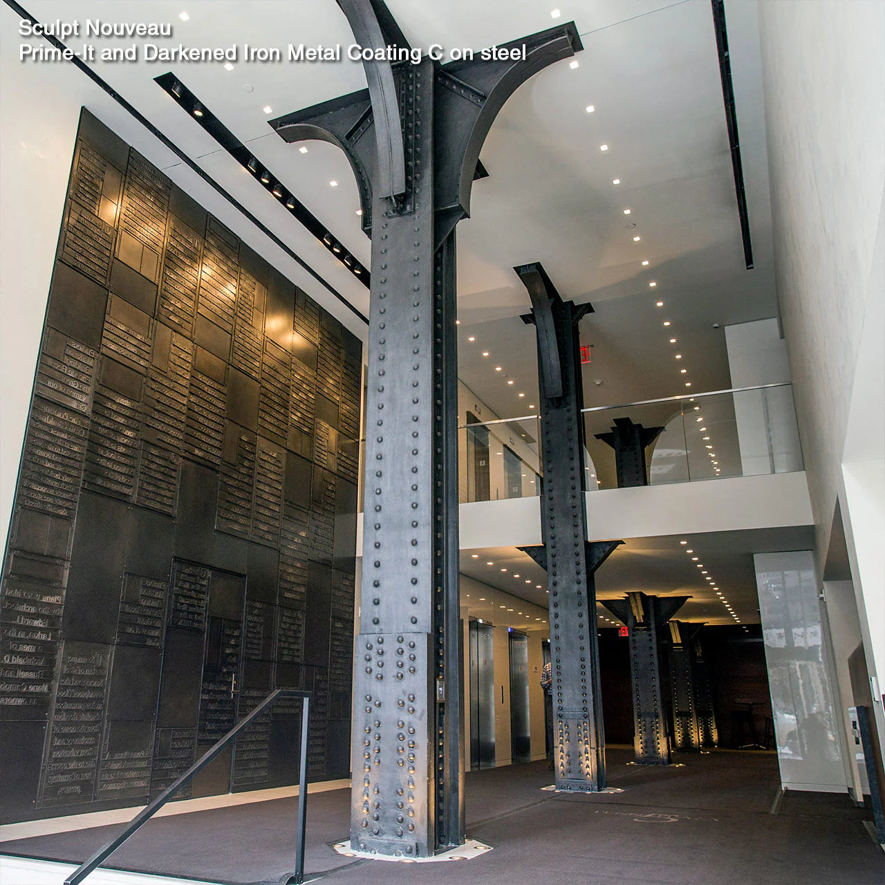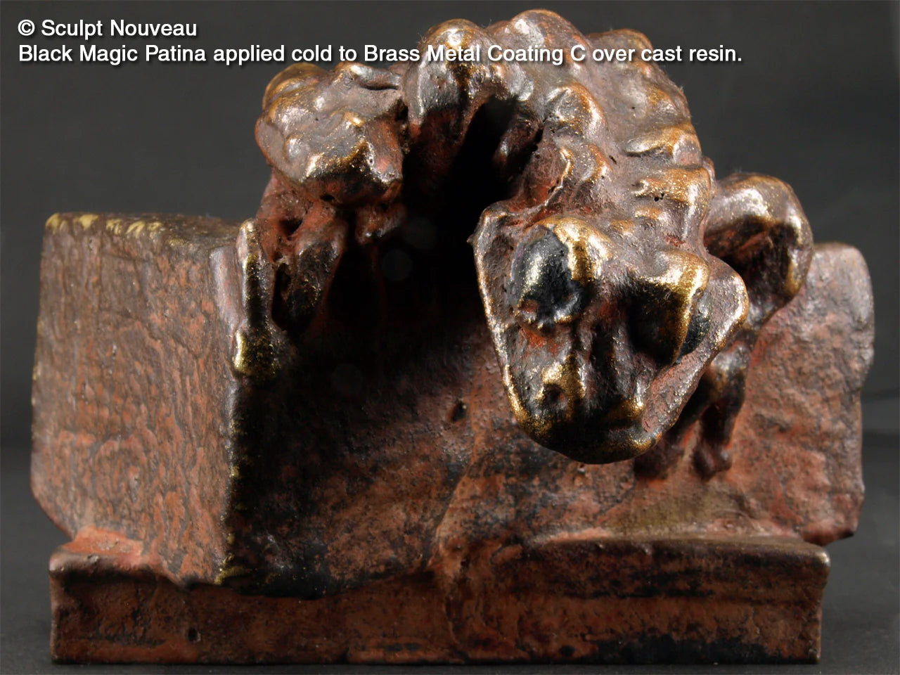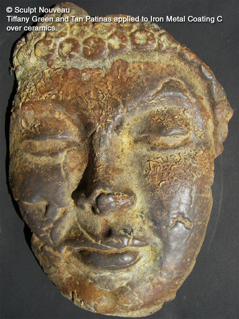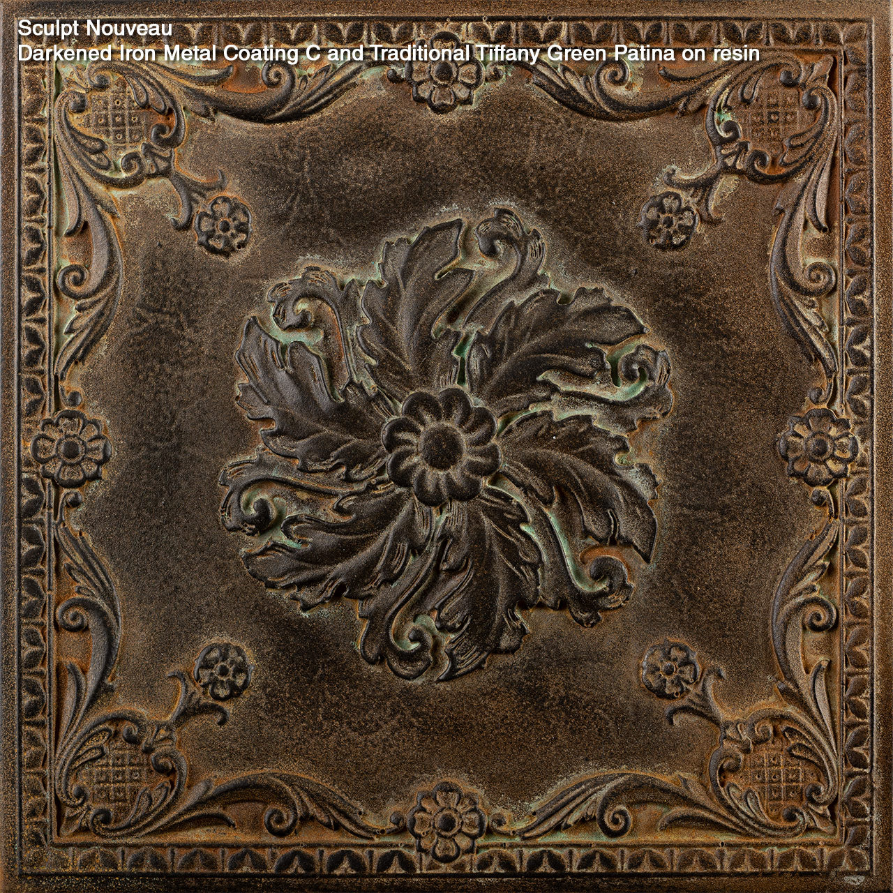 Todas las pátinas de óxido de tinte, pátinas universales, pátinas Vista, tintes solventes, tintes de pátina y ceras de acabado funcionan bien con los recubrimientos metálicos, lo que permite infinitas posibilidades de acabados. Entre las pátinas tradicionales, las pátinas Hígado de Azufre (marrón) y Tiffany (verde) funcionan mejor con los revestimientos metálicos.