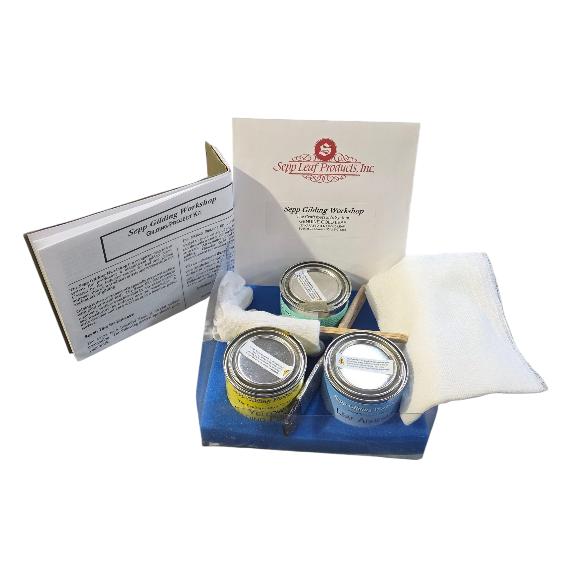 El Taller de Dorado Sepp es un sistema completo y fácil de usar para producir una magnífica pieza dorada. Creado por la fuente de la industria de suministros de hojas y dorado, este kit presenta a artistas y aficionados el antiguo arte del dorado.
