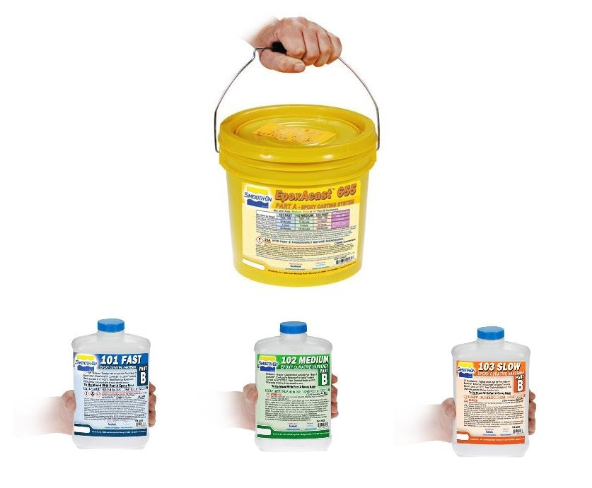 El epoxi curado EpoxAcast ™ 655 tiene altas propiedades físicas y se utiliza para una variedad de aplicaciones que incluyen la fabricación de herramientas duras, matrices/moldes de formación al vacío, moldes de inyección, patrones de fundición, plantillas y accesorios y matrices de formación de metales. Dependiendo de los requisitos del proyecto, la Base Parte A se puede mezclar con los endurecedores 101 FAST , 102 MEDIUM , 103 SLOW o HT HIGH TEMP .