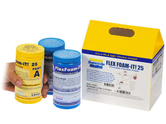 Los líquidos de las partes A y B se combinan, se mezclan y se vierten en un molde u otra forma (aplica agente desmoldante si es necesario). La mezcla subirá y curará rápidamente hasta formar una espuma sólida y flexible. Las espumas varían según la densidad y ofrecen buenas propiedades físicas. FlexFoam-iT!™ 25 es la espuma de mayor densidad y la que menos se expande.