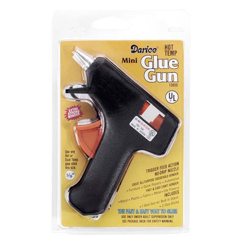 ¡Esta pistola de temperatura caliente de Darice� es la manera rápida y fácil de pegar! Con una acción de alimentación mediante gatillo y una boquilla antigoteo, esta pistola también le ayuda a mantener su estación de trabajo limpia y eficiente. Ideal para reparaciones rápidas y una multitud de proyectos de manualidades, esta pistola puede utilizar barras de pegamento de doble temperatura o de temperatura caliente de 7/16 de pulgada de diámetro. Funciona en madera, muebles, plástico, metal, telas, flores de seda y más. Cada pieza incluye la pistola de pegamento, 2 barras de pegamento y un soporte de metal para sostener la pistola de pegamento caliente mientras trabaja. 1 pieza por paquete.