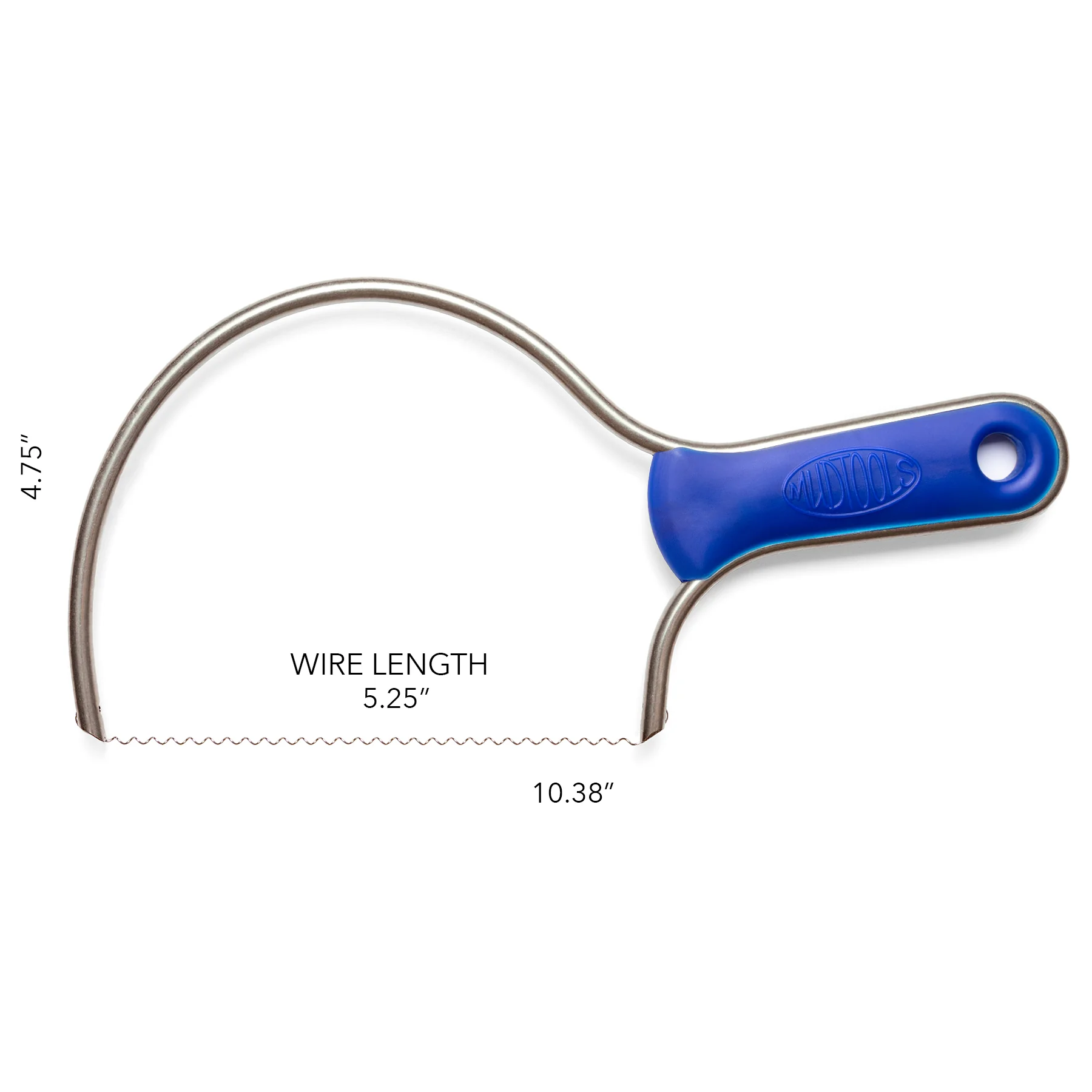 El Mudcutter puede ser la herramienta más útil que no sabías que necesitabas. Es una herramienta de alambre con un marco arqueado y estriado. Esto le permite cortar con una mano. Puede cortar arcilla con una sola mano de un molino de barro o una extrusora o cortar el ángulo correcto en el pico antes de colocarlo en la olla. ¡Es como una mano extra!