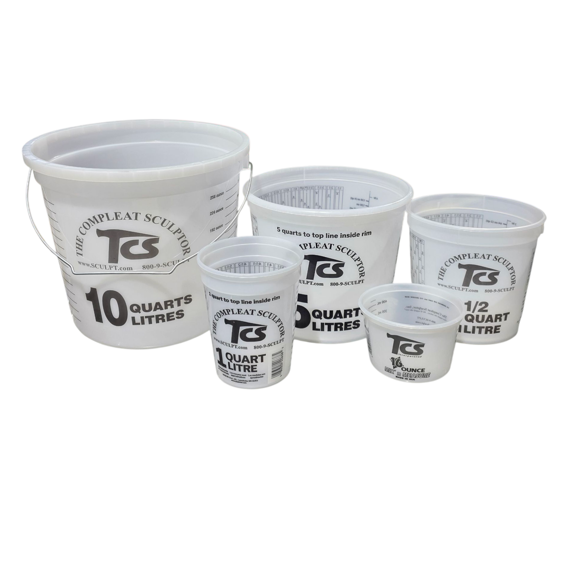 Tamaños convenientes desde pinta hasta 10 cuartos calibrados con marcas imperiales y métricas para un excelente dispositivo de mezcla/medición. Nuevamente, este balde es resistente a los solventes. Úselo con todas las pátinas, yesos, cauchos y adhesivos.