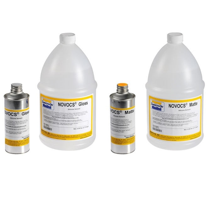 Los solventes NOVOCS™ son solventes de silicona de baja viscosidad que se evaporan rápidamente. NOVOCS™ es particularmente útil para diluir la base de pintura de silicona Psycho Paint™ y aplicarla con brocha o aerógrafo sobre prótesis y accesorios de caucho de silicona de platino curados. Cuando se utiliza como disolvente para diluir pinturas de silicona o revestimientos de superficies, NOVOCS™ Gloss dejará un acabado brillante. NOVOCS™ Matte dejará un acabado mate.