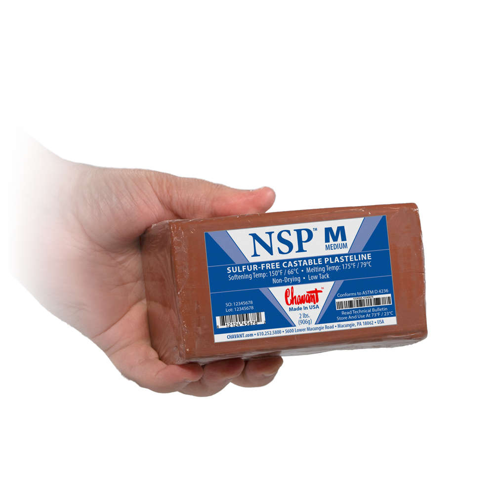 La arcilla Chavant NSP es una arcilla para modelar sin azufre, ampliamente aceptada a nivel mundial, utilizada en las industrias de efectos especiales y bellas artes. Mantiene detalles de superficie excepcionales y es algo más ceroso y más resistente que otros productos Chavant.