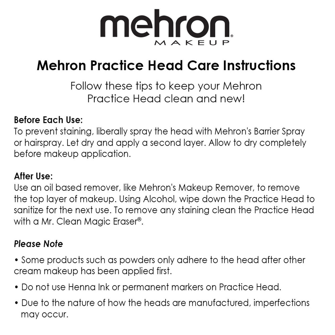 ¿Se te acabaron las caras dispuestas? Tenemos la respuesta: la cabeza de práctica de pintura facial de Mehron. Se garantiza que se quedará quieto, no se frotará los ojos y nunca se quedará sin paciencia. Este cabezal de práctica lavable y de calidad profesional es la herramienta de aprendizaje ideal para perfeccionar los conceptos básicos de pintura facial, practicar técnicas específicas, probar nuevos productos de maquillaje y crear sus propios diseños únicos. Hecho de vinilo duradero que tiene una textura suave que permite una fácil aplicación de pintura y una fácil combinación de tonos y colores. Limpiar con desmaquillante y/o agua y jabón. Aprox. 8" x 10" x 18".