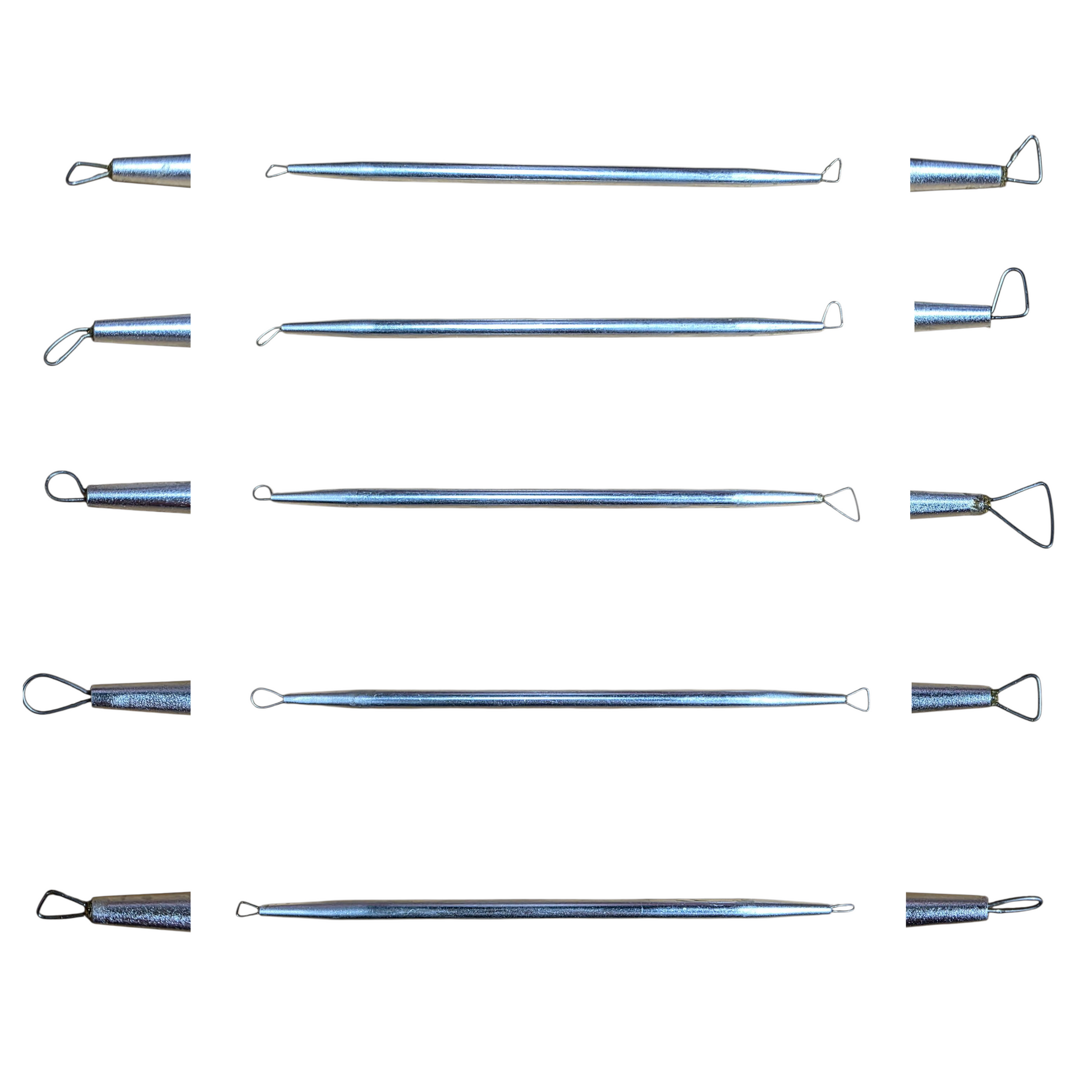 También conocido como herramientas Thin Line, el juego 608AZ de cinco mini herramientas para detalles de acero es una ventaja para cualquier escultor. Cada herramienta de doble extremo de alambre brinda al artista la capacidad de agregar detalles finos en rostros como iris, diseños incisos y esgrafiados, que son populares en pintura y cerámica.