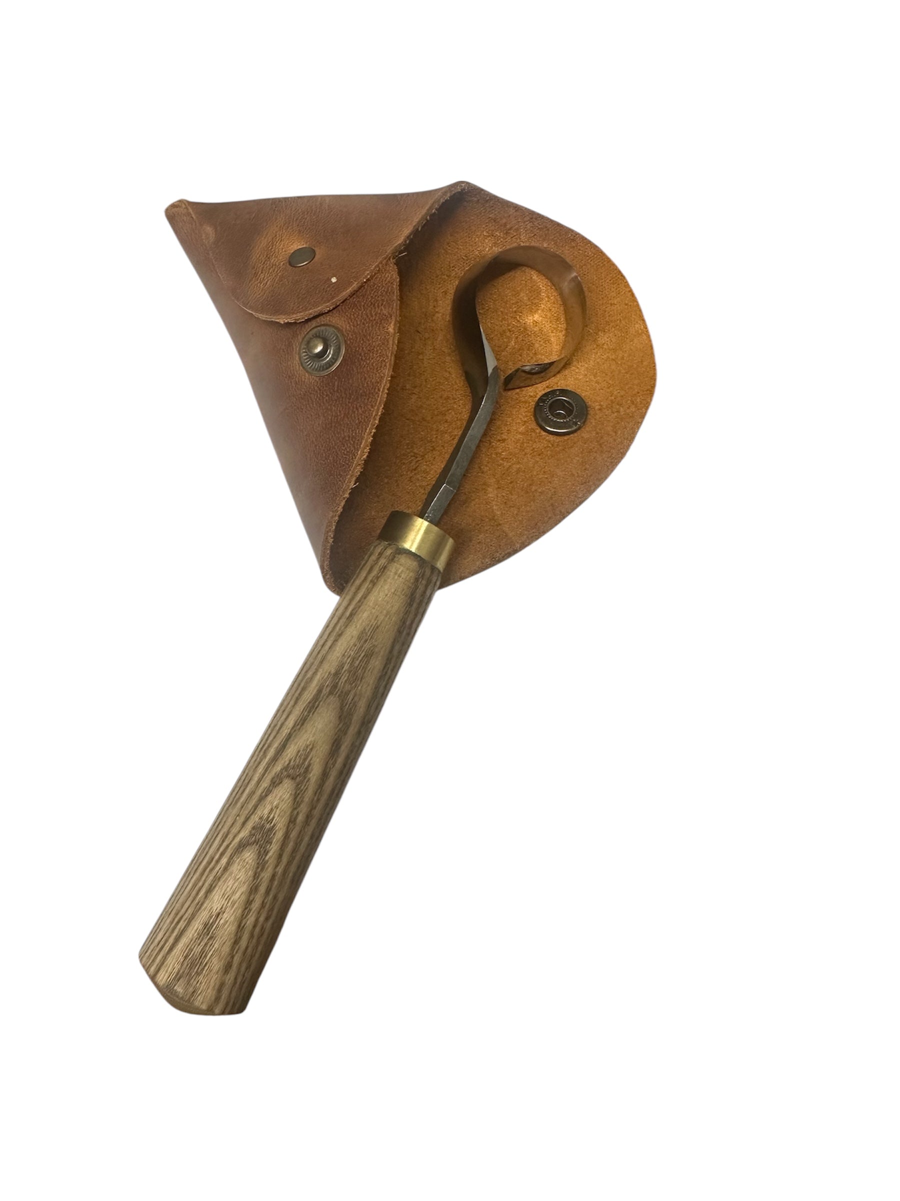 Hand-Forged Spoon Carving Round Knife boasts a curved, razor-sharp blade meticulously forged from high-carbon steel, facilitating both delicate detail work and substantial stock removal. Crafted with utmost care, the blade is hardened and finely honed, effortlessly slicing through both soft and hardwood. The handle is made of ash wood, carefully polished and coated with natural linseed oil. This design provides a comfortable and secure grip, providing stability and ease of use during long carving sessions.