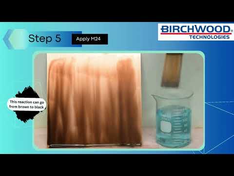 - SAPU ANTIQUE BLACK M24 SOLUTION secara merata ke permukaan, menggunakan swab, span atau penyembur pam plastik. Benarkan larutan berfungsi pada bahagian sehingga warna yang dikehendaki dihasilkan. Gunakan M24 yang tidak dicairkan untuk salutan hitam dan masa tindak balas yang cepat di bawah 30 saat. Atau, cairkan dengan air paip untuk melambatkan tindak balas dan menjadikannya lebih mudah untuk menghasilkan warna coklat. Mulakan dengan pencairan 1:1 dan naik atau turun dari sana.