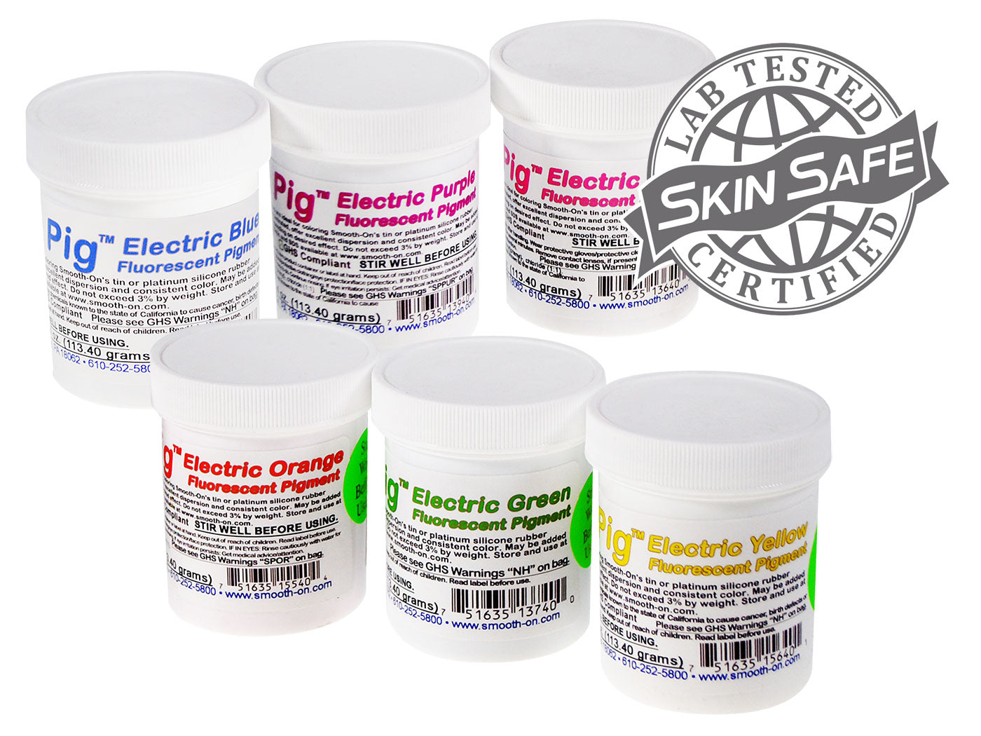 - Pigmen Silikon Pendarfluor Elektrik Silc Pig™ selamat untuk kulit dan diperakui oleh makmal bebas.