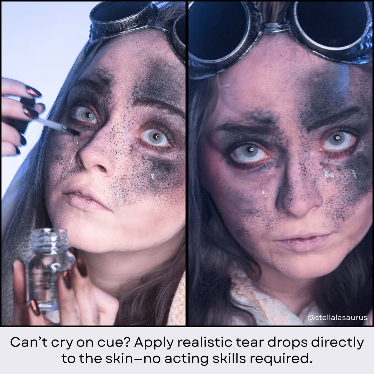 Sapukan dengan berus atau span menggunakan gerakan menepuk atau mencelup untuk meninggalkan "manik peluh". Lebih banyak aplikasi akan meninggalkan manik yang lebih besar. Produk ini tidak akan kering, jadi ia bagus untuk menghasilkan rupa berpeluh untuk jangka masa yang lama. Setitis boleh digunakan pada sudut mata untuk membuat koyakan. Keluarkan dengan sabun dan air.