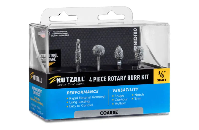 This Kit provides the perfect combo of removal rate and surface quality, along with the versatility you need on your larger projects. With four of the most popular shapes in the dependable ‘Coarse’ coating, this package is as trustworthy as it comes.