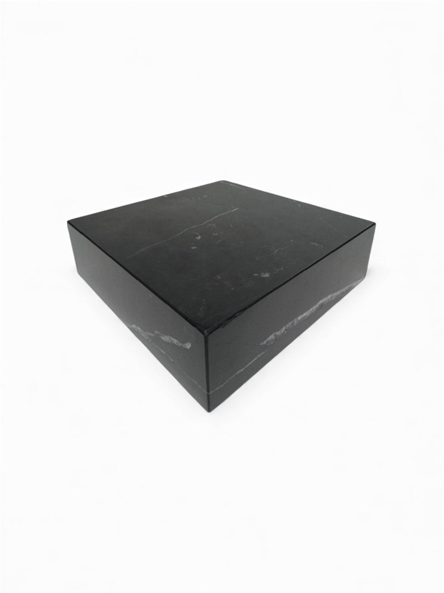 Nero Marquina rectangular sculpture base. It is a beautiful black marble, sometimes with veins sometimes more black. This contemporary, modern, marble sculpture base is available in many sizes. Sometimes the veins are more prevalent than others