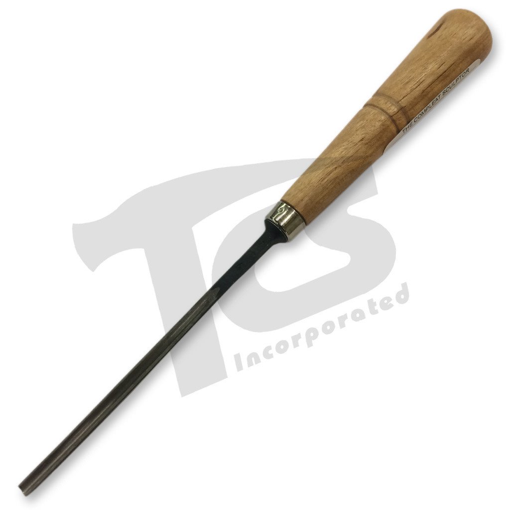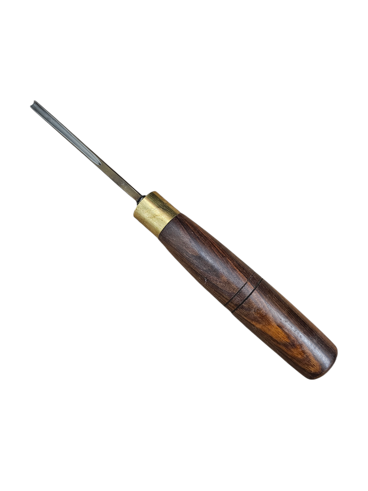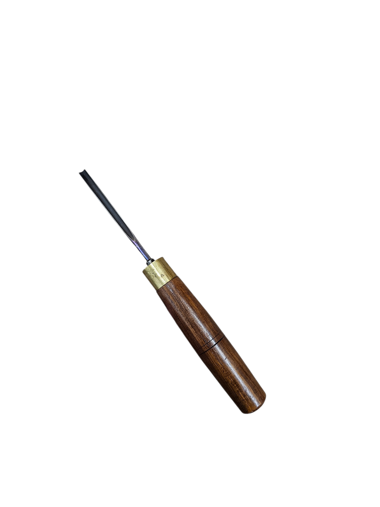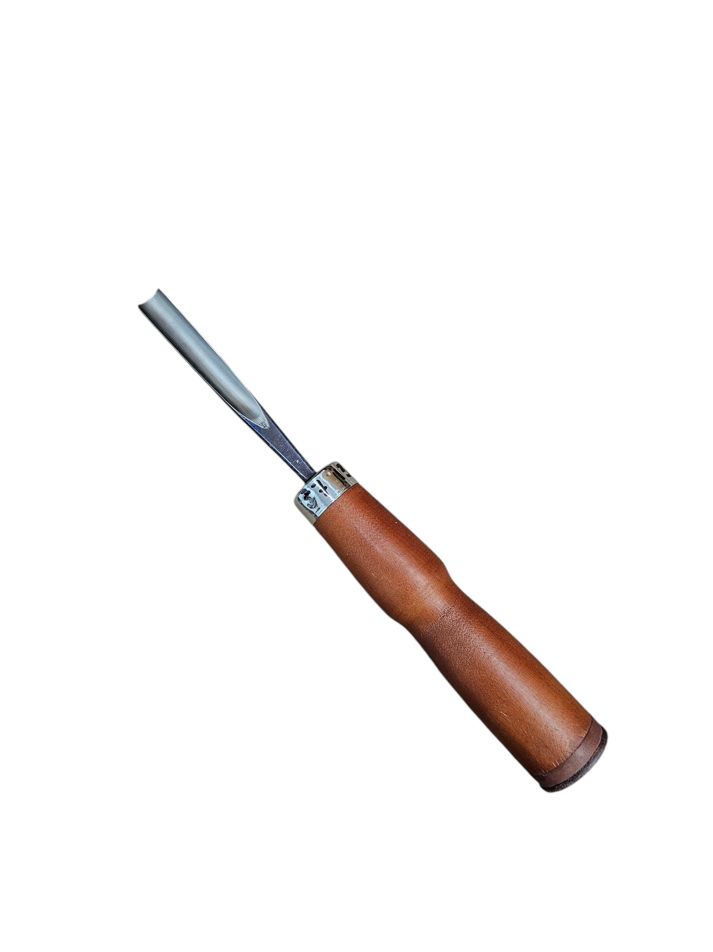 These tools, with a curved cutting edge of 1/8" to 2" from tip to tip, is made from Beautiful, highly polished tool steel. The steel (Grade 1095C) is high carbon steel, tempered or heat treated to harden the steel so it maintains a sharp edge, will range approx. 59 to 62 hardness. A hand forged with high carbon tool steel, with a hardwood handle (handle shape may vary).