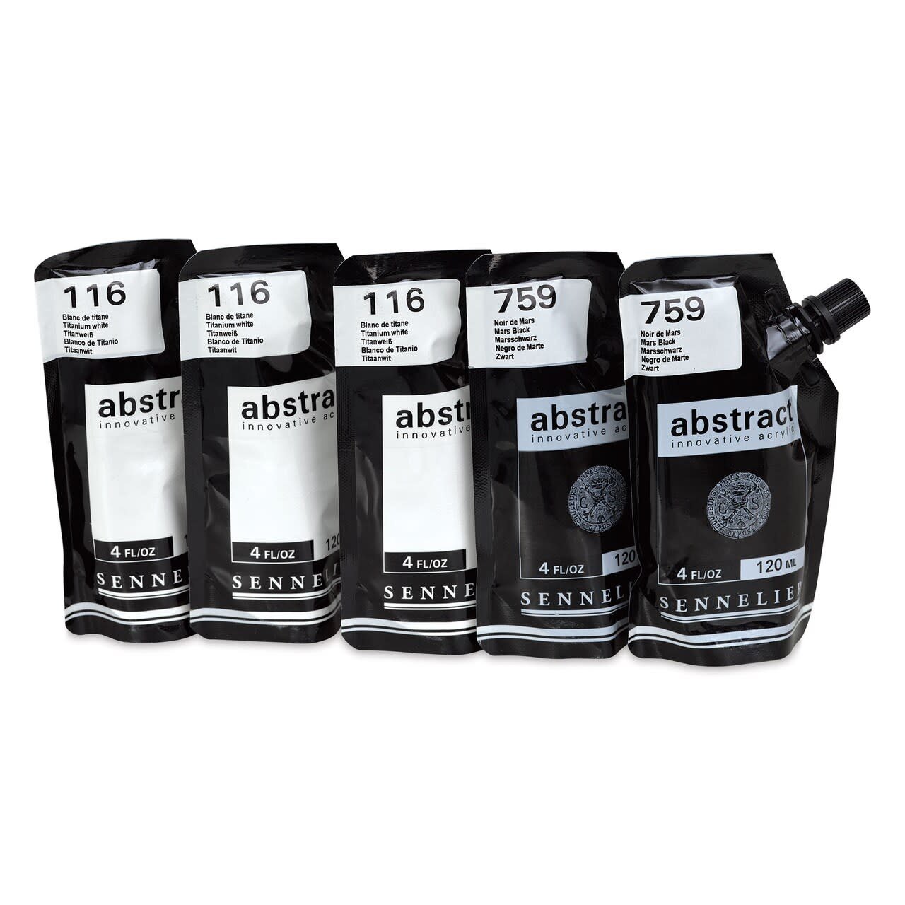 Think outside the tube with Abstract Acrylic paint sets! These highly pigmented, heavy body acrylic paints come housed in an extra-sturdy, easy-to-transport squeezable pouch that features a transparent window to shows the exact color inside. Paint straight out of the pouch or use it as you would any acrylic paint. Made in France.