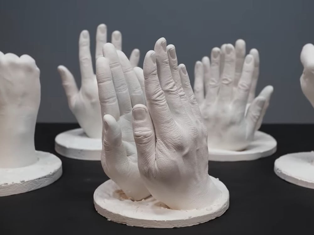 You too can now make a hard stone casting with amazing detail of up to two adult hands with our complete Adult Hand Casting Kit. Making a hand sculpture with this kit is lots of fun and a terrific way to learn this fascinating art form. Very Popular Item for Valentines Day. Great Wedding Present. Please don't wait for the last minute to order.