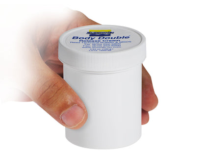 Body Double™ Release Cream is a non-toxic skin conditioner that will aid in releasing Body Double™ mold rubber from skin surfaces with or without hair. Body Double™ Release Cream is skin safe and certified by an independent laboratory. It washes off with soap and water. It is highly concentrated, so a little goes a long way. To use, wash intended body section with soap and water and dry thoroughly. Liberally apply Body Double™ Release Cream to all skin surfaces (bare and hair covered) that will contact Body Double™ mold rubber. Take special care to aggressively message and work the cream into and over body hair.