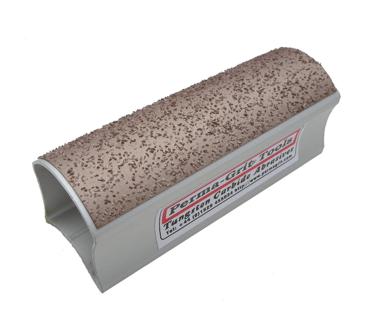 Contouring Block, external face 30mm radius & internal face 28mm radius. Dims:- 140 x 47 x 52 mm approx. Tungsten carbide grit abrasive, tough and long lasting. Popular with Stonemasons and for brick/block work, rubbing block, roughing out block.
