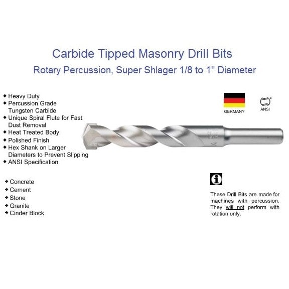These Drill Bits are made for machines with percussion. They will not perform with rotation only.