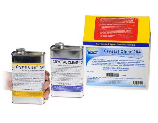 Crystal Clear™ 204 is a water white clear and made specifically for applications that require clarity. These rigid urethane casting resins differ only in working and demold times. Low viscosity ensures easy mixing and pouring. Crystal Clear™ resins cure at room temperature* with negligible shrinkage.