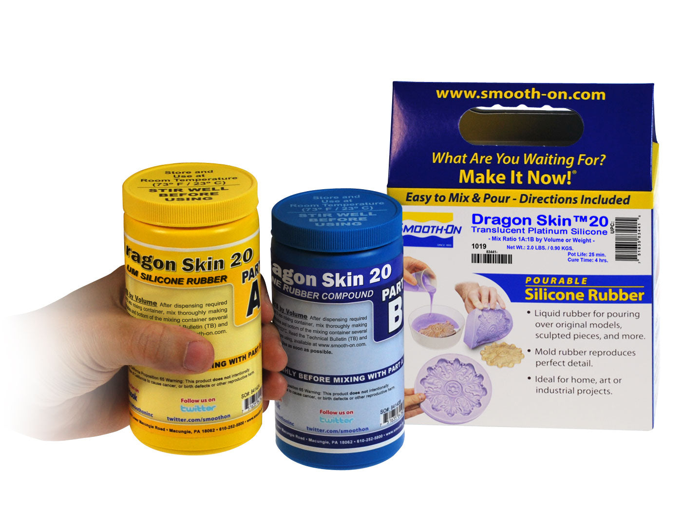 Dragon Skin™ silicones are high performance platinum cure liquid silicone compounds that are used for a variety of applications ranging from creating skin effects and other movie special effects to making production molds for casting a variety of materials. Because of the superior physical properties and flexibility of Dragon Skin™ rubbers, they are also used for medical prosthetics and cushioning applications. Dragon Skin™ rubbers are also used for a variety of industrial applications and have a service temperature range of a constant -65°F to +450°F (-53°C to +232°C).