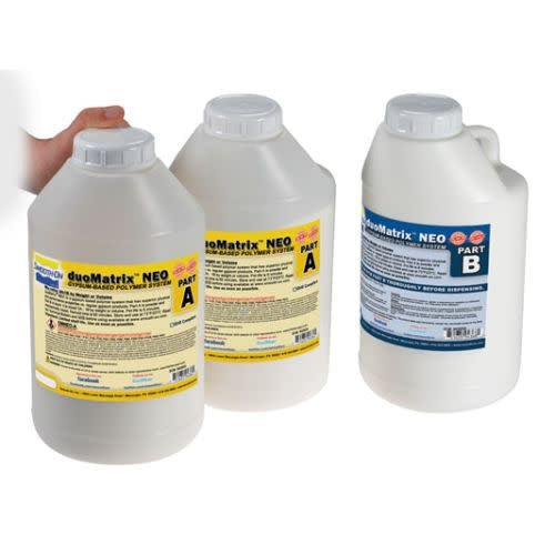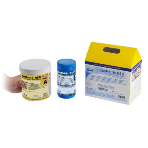 duoMatrix™ NEO is a versatile polymer modified gypsum system that has superior physical and performance properties compared to regular gypsum products. Part A is powder and Part B is liquid.