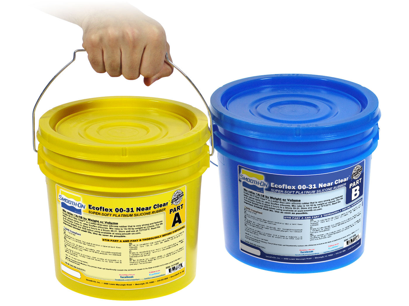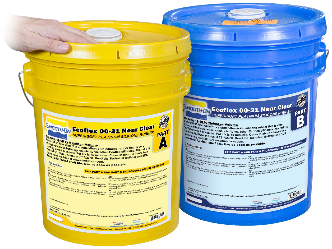Ecoflex™ 00-31 Near Clear™ and Ecoflex™ 00-45 Near Clear™ are very soft, platinum silicones that are clearer than other Ecoflex™ silicones. Versatile and easy to use, Ecoflex™ Near Clear™ rubbers are mixed 1A:1B by weight or volume and cures at room temperature with negligible shrinkage. Low viscosity ensures easy mixing and de-airing. Cured material is skin safe and certified by an independent laboratory.