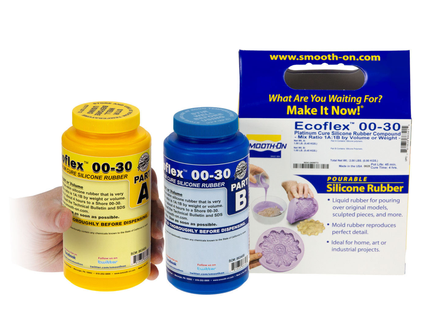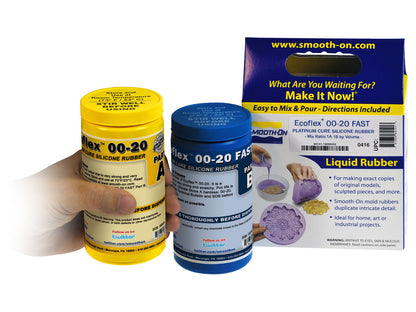 Ecoflex™ rubbers are platinum-catalyzed silicones that are versatile and easy to use. Ecoflex™ rubbers are mixed 1A:1B by weight or volume and cured at room temperature with negligible shrinkage. Low viscosity ensures easy mixing and de-airing. Cured rubber is very soft, very strong and very “stretchy”, stretching many times its original size without tearing and will rebound to its original form without distortion.