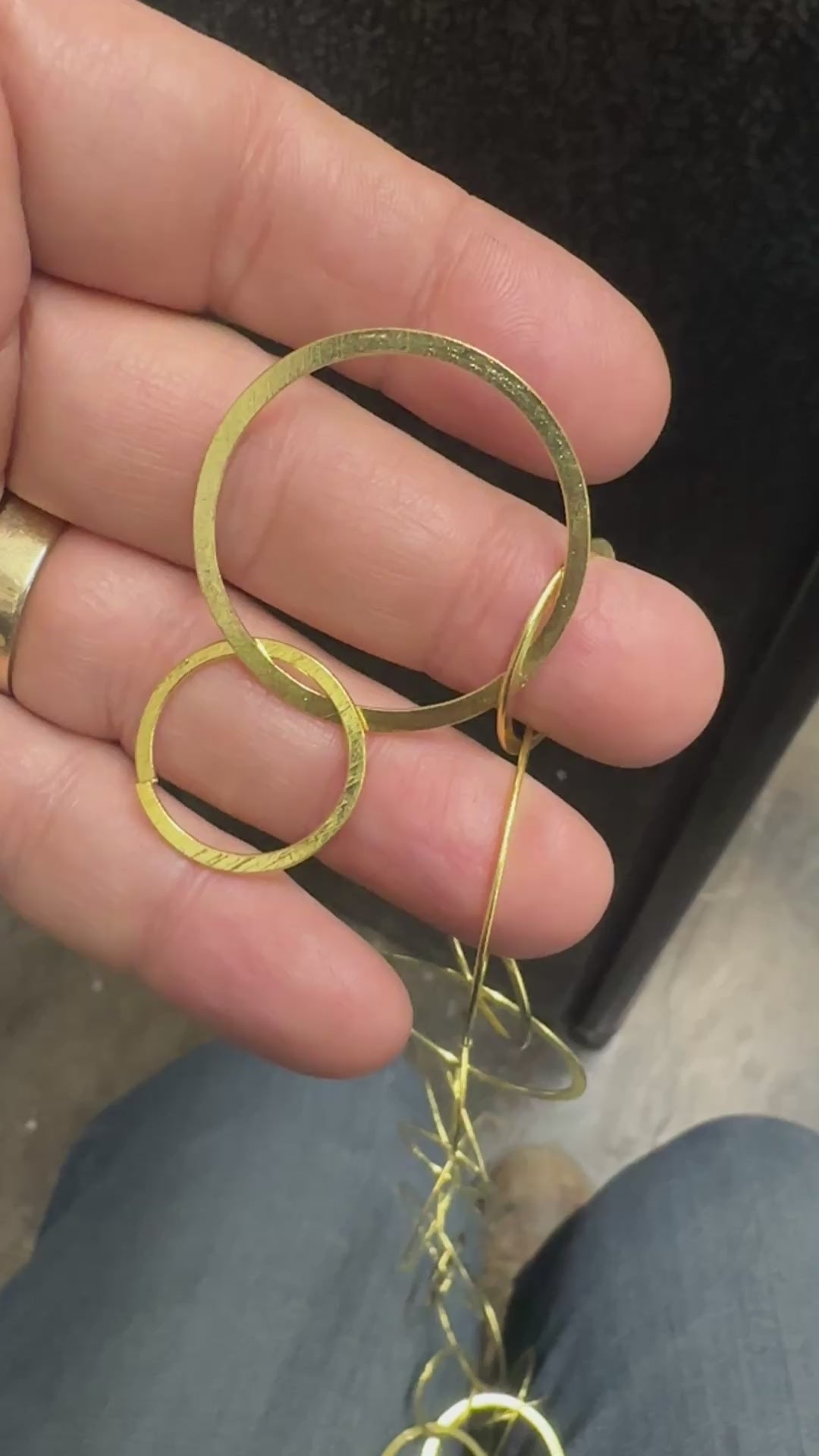 These strands of gold plated brass rings are a new find. Each pack contains ~36" of connected loops