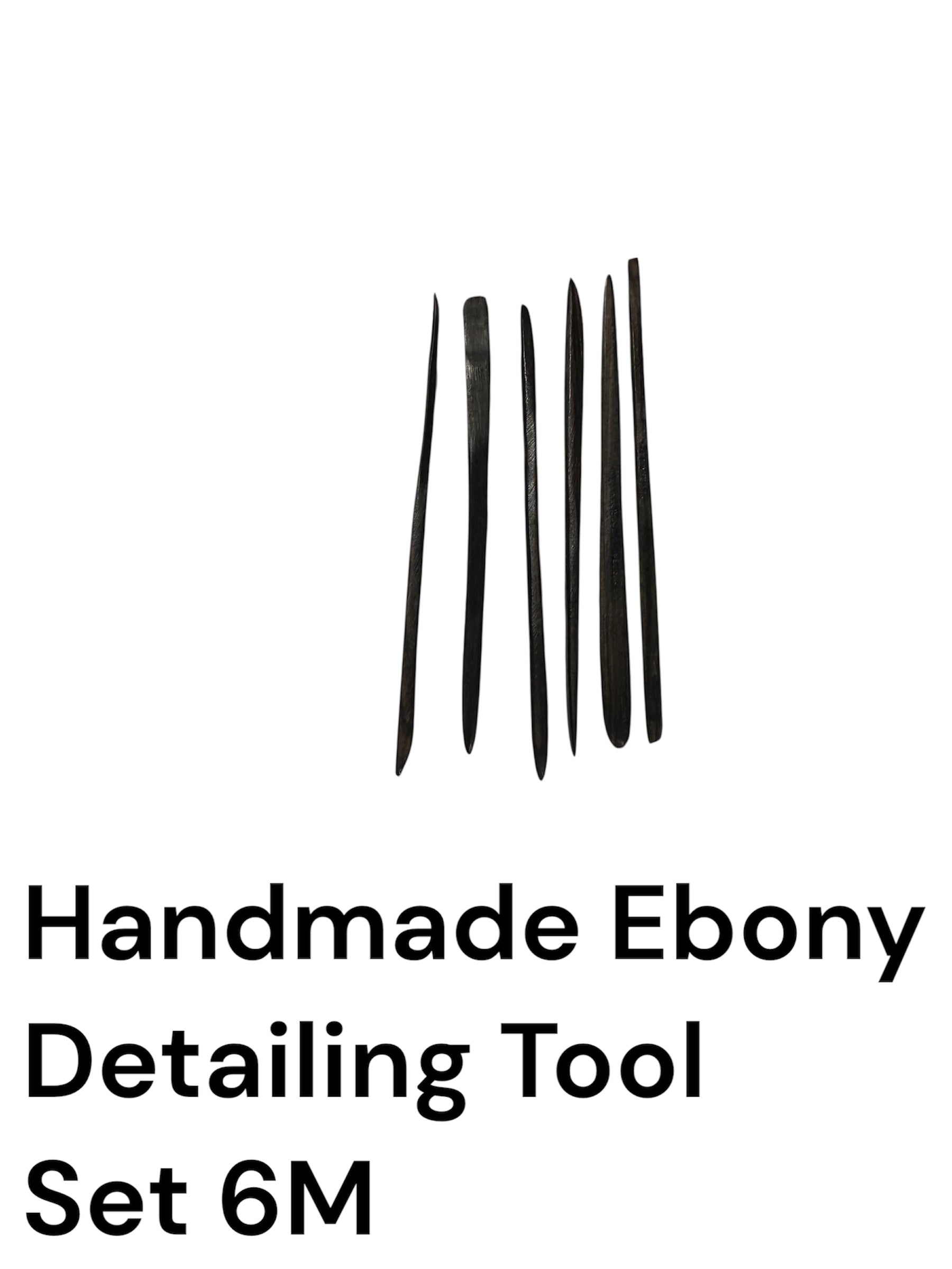These are handmade Ebony Detailing Tools. Each one is a little different and filled with our favorite tools. Great for creating all kinds of texturing effects and general scuulpting in clays of all kinds. As they are handmade from the highest quality materials, there are some variations in wood color and shape, but they are always excellent!!!