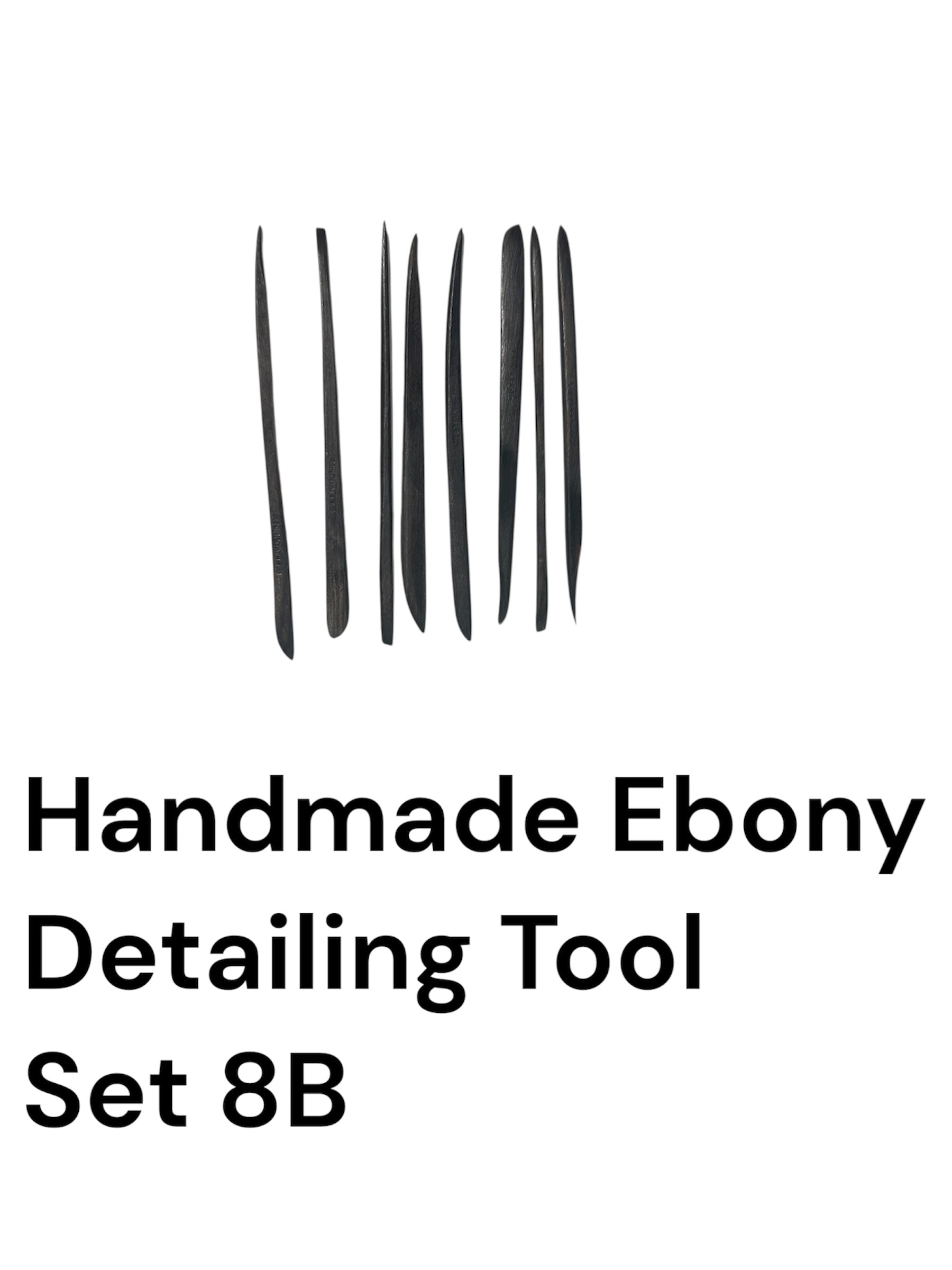 These are handmade Ebony Detailing Tools. Each one is a little different and filled with our favorite tools. Great for creating all kinds of texturing effects and general scuulpting in clays of all kinds. As they are handmade from the highest quality materials, there are some variations in wood color and shape, but they are always excellent!!!