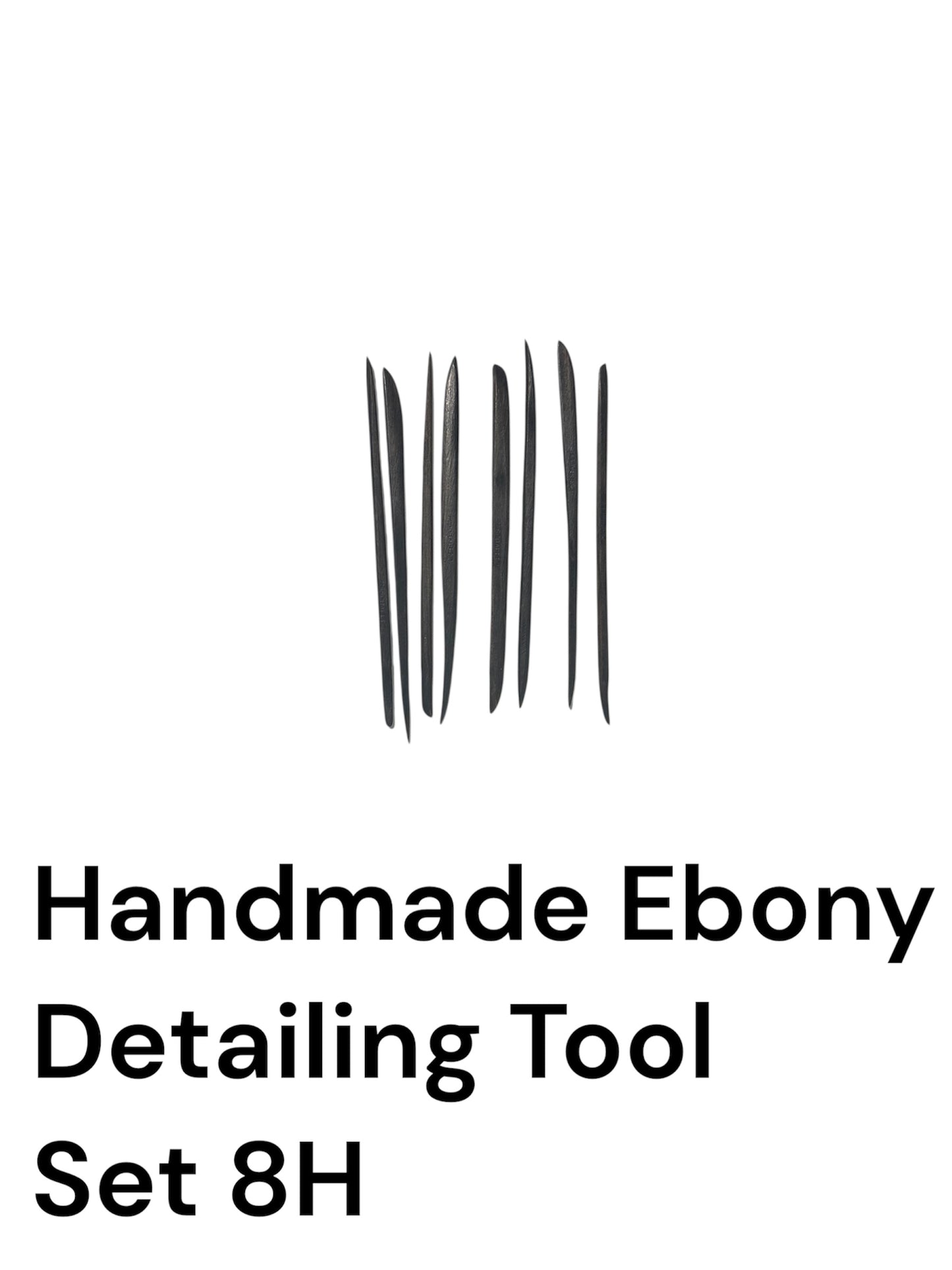 These are handmade Ebony Detailing Tools. Each one is a little different and filled with our favorite tools. Great for creating all kinds of texturing effects and general scuulpting in clays of all kinds. As they are handmade from the highest quality materials, there are some variations in wood color and shape, but they are always excellent!!!