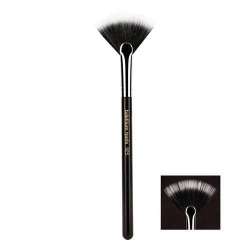 Used for lightweight application and to help brush off any excess product. Optimized soft natural and synthetic mixed fibers. This professional brush features black wood handles and a nickel-plated brass ferrule. Hand-crafted brushes. Professional high quality brush.