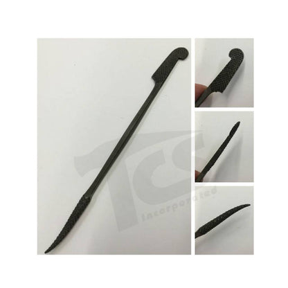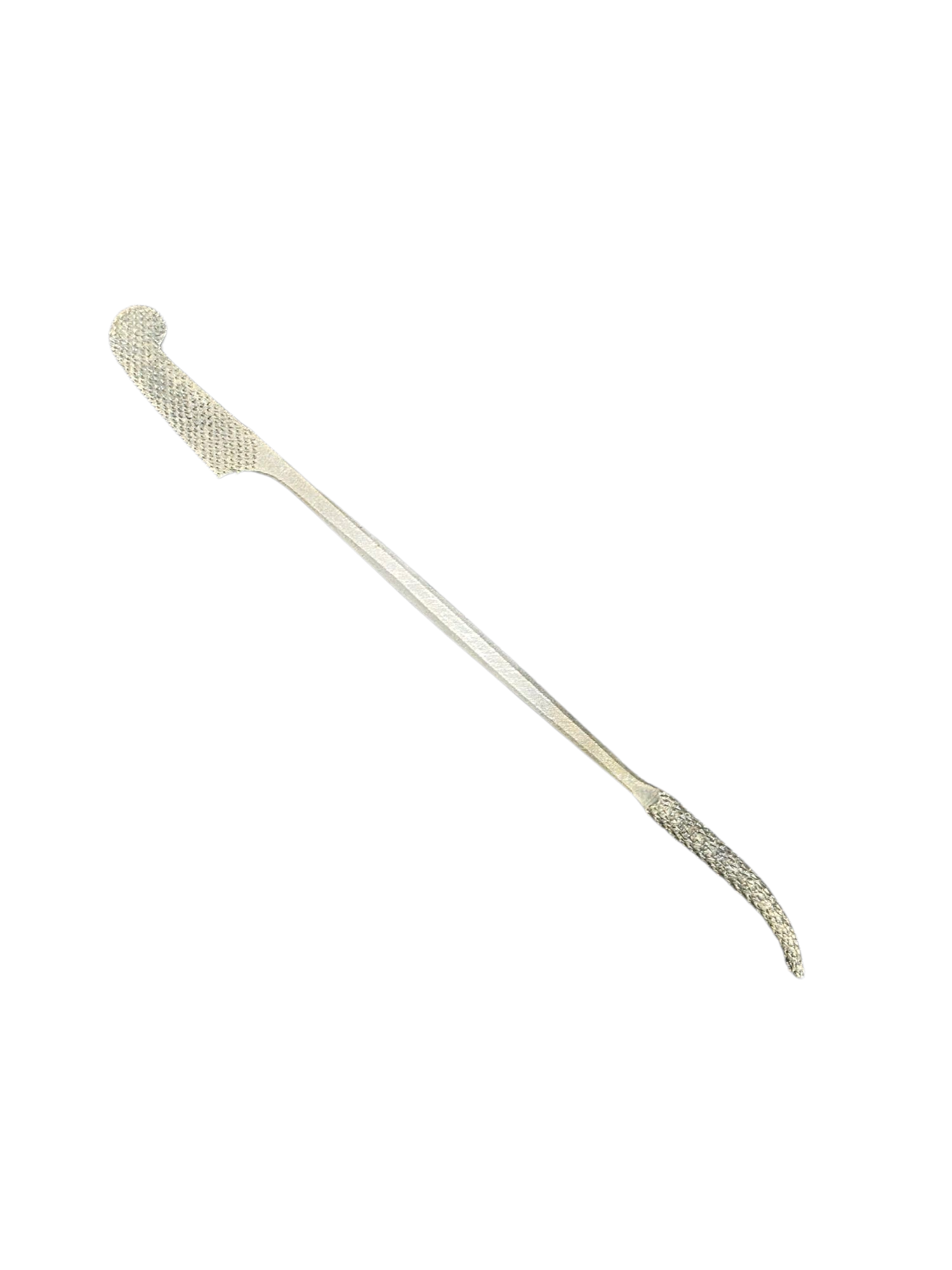 Classic Italian design with one end slightly bent fully around. The other end scalloped for getting into hard to reach spaces.