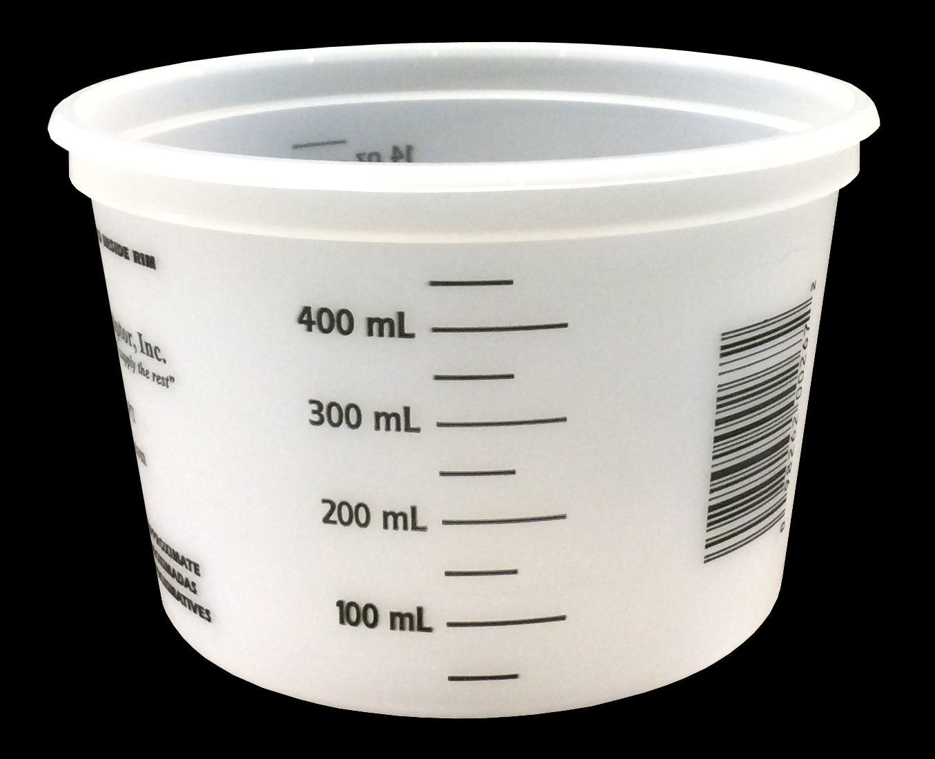 Calibrated multi-mix mixing container solvent, resistant, recyclable, high density polyethylene, clear. For use with paint plaster clay cleaning solutions and so much more.