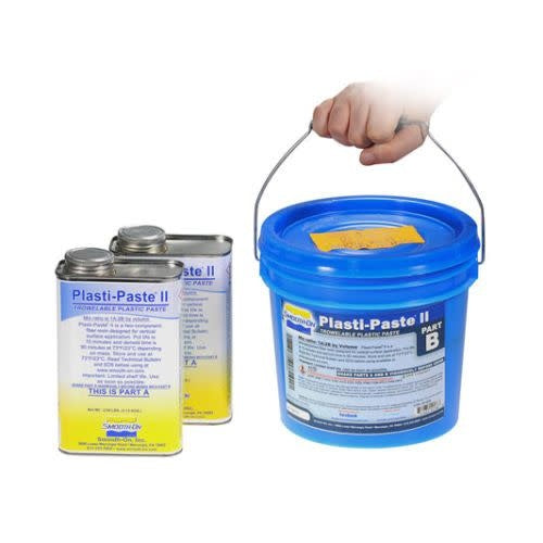 New Plasti-Paste™ II is a two component fiber-filled resin that is designed for vertical surface application. This no-odor formulation is an improved version of our original Plasti-Paste™ formula, and the cured product is different in the following ways: