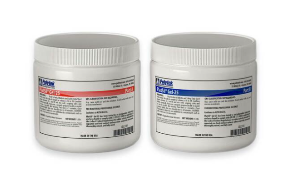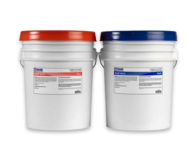 | 80-lb kit includes: | 40 lb of PlatSil® Gel-25 Part A (~5 gallons) 40 lb of PlatSil® Gel-25 Part B (~5 gallons) |