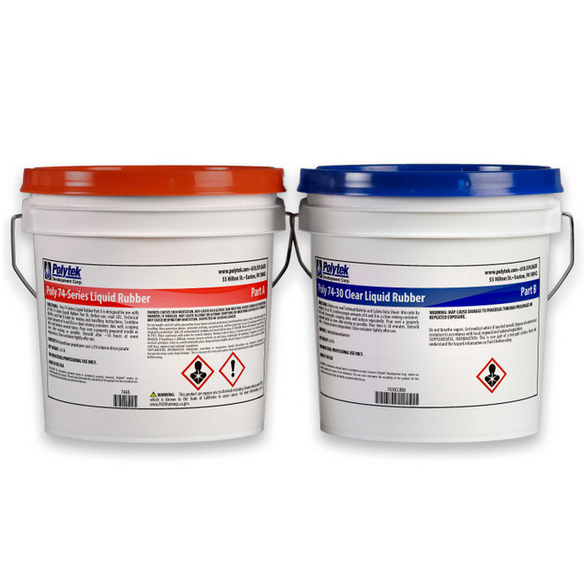Poly 74-30 Clear Liquid Rubber is a two-part, liquid polyurethane system that cures (RTV) to a transparent amber, Shore A30 rubber. This is the transparent version of Poly 74-30 Liquid Rubber. This product is useful for molds where clarity is needed to see casting material fill the cavity. This liquid polyurethane rubber can also be used for casting clear amber or color-cast flexible art objects and décor. Poly 74-30 Clear is a pourable rubber, but it can be easily thickened with PolyFiber II Thickener for brush-on application.