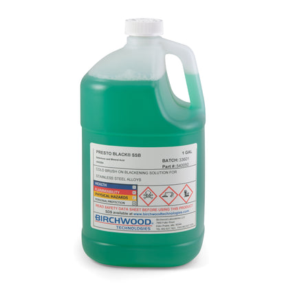 PRESTO BLACK SSB is a versatile room temperature blackening solution for stainless-steel substrates. It can be brushed-on, sprayed-on, wiped on, or used to make up an immersion bath.