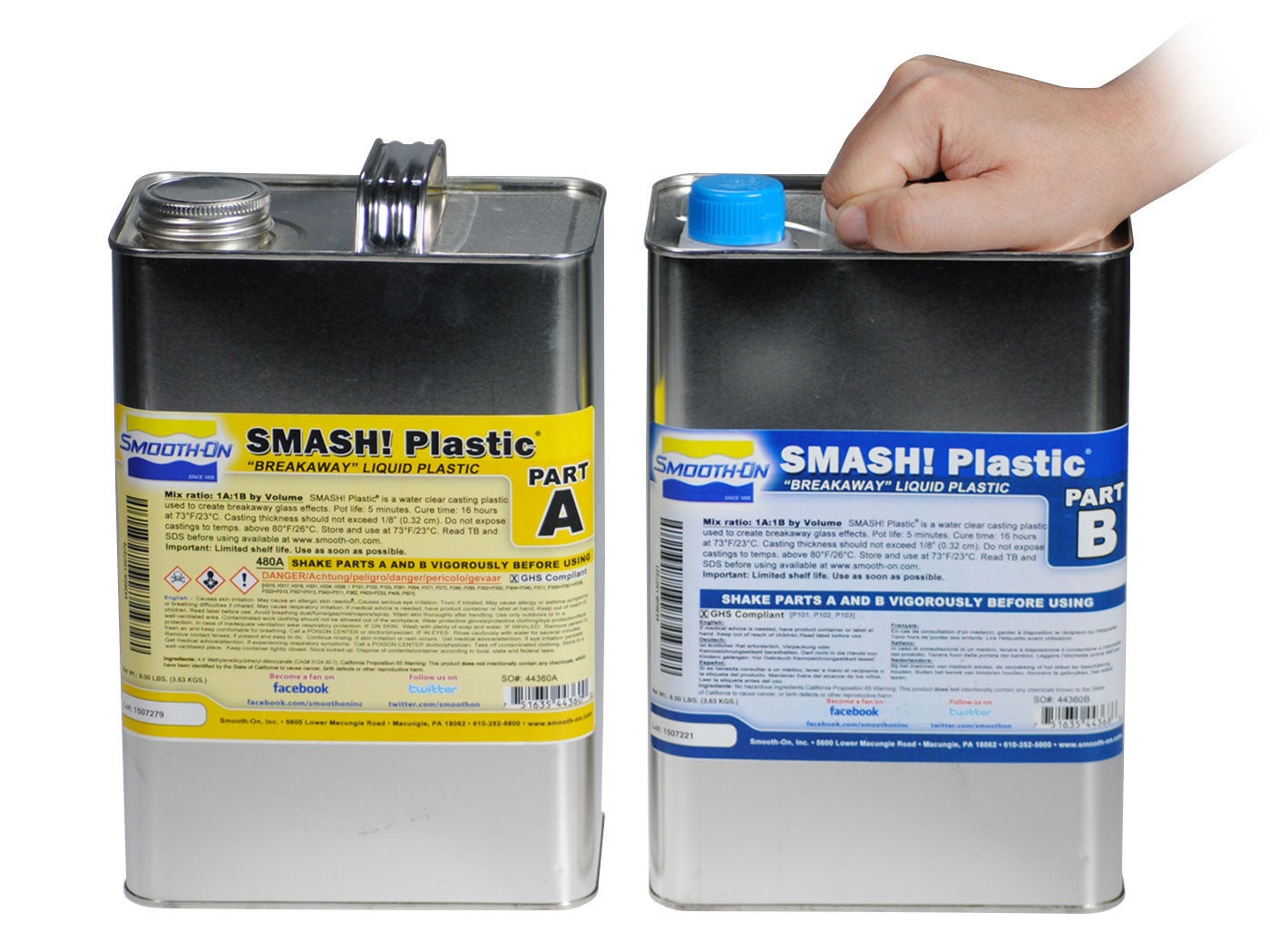 SMASH! Plastic™ is a new urethane liquid plastic designed to shatter/crumble on impact ("breakaway glass"). SMASH! Plastic™ is water clear and, once fully cured, shatters like glass. It can be cast solid in thin sections to make window panes or rotationally cast to form hollow bottles, jars or other glass-like objects to be used as breakable props for movie and stage productions. Maximum recommended thickness is 1/8" (0.33 cm.).