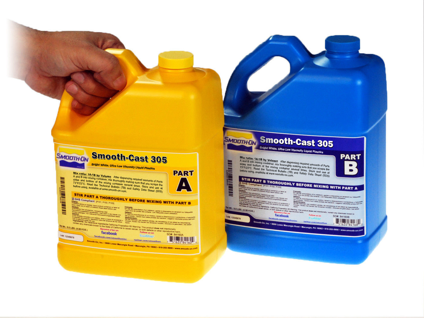 The Smooth-Cast™ 300 Series of liquid plastics are ultra-low viscosity casting resins that yield castings that are bright white and virtually bubble free. Vacuum degassing is not necessary. They offer the convenience of a 1A:1B by volume or 100A:90B by weight mix ratio. The differences between them are pot life and demold time.