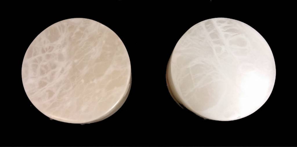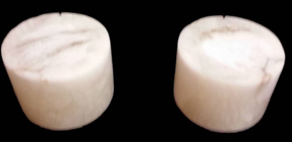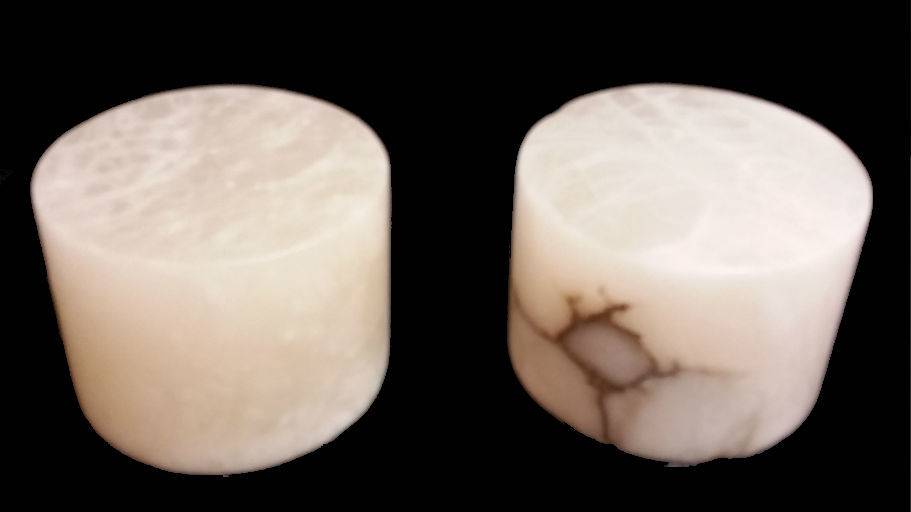 Imported from Italy, these translucent alabaster cylinders are used by students throughout Europe. The carving process has been quickened due to the reduction of the bulk geometric form into round carving cylinders. They can also be used for stone turning on a wood lathe for creating translucent bowls. With variations of white opaque with translucent white veins, some are more opaque and some are more translucent.
