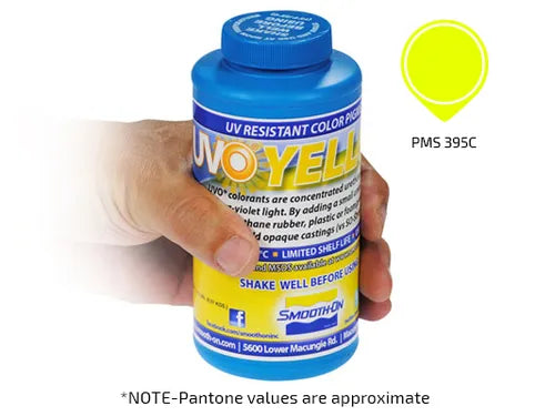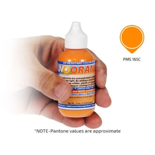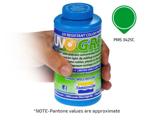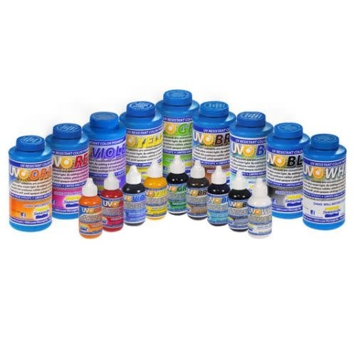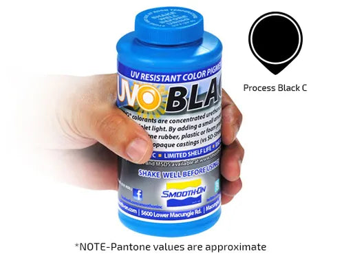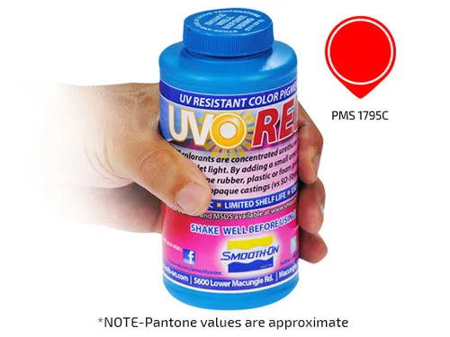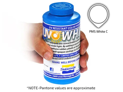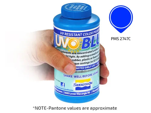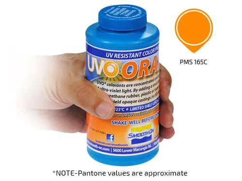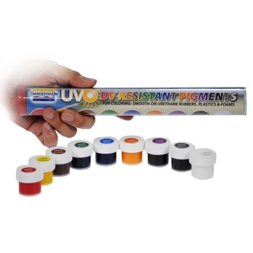 UVO™ Colorants are concentrated, phthalate-free urethane color pigments that resist ultraviolet light. By adding a small amount of UVO™ to a Smooth-On epoxy, urethane rubber, plastic or foam product, these pigment dispersions will yield opaque castings (vs. SO-Strong™ color tints that can yield translucent urethane castings). For glowing fluorescent color effects, use Ignite™ colorants.