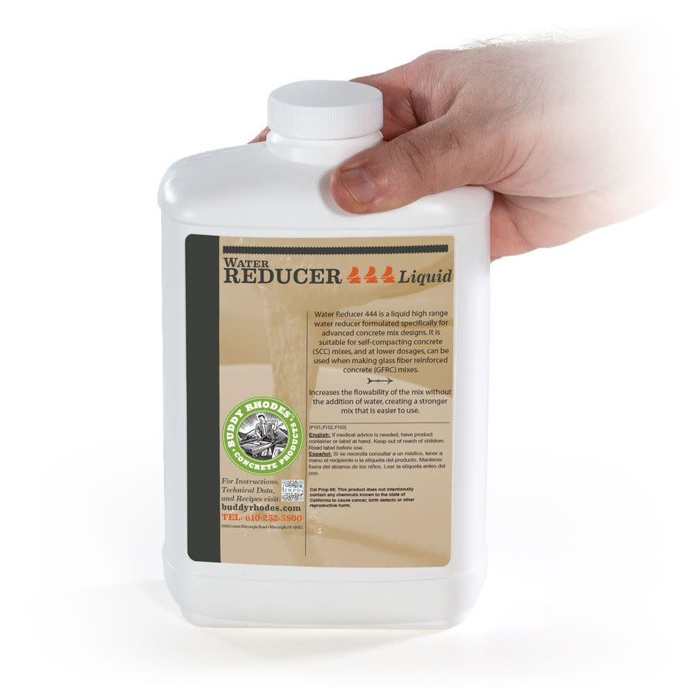 Water Reducer 444 is a liquid plasticizer designed to work well with all Buddy Rhodes high-performance concrete mixes. It is a versatile water reducing option that can be used to make self consolidating concrete (SCC), and at lower doses will provide fluidity needed to spray GFRC mixes without imparting too much sag or slump. Water Reducer 444 can also be used to temper mixes that have been plasticized with Water Reducer 310 or Water Reducer 205. This combination of water reducers allows the fabricator a wide range of possibilities in responding to environmental conditions.
